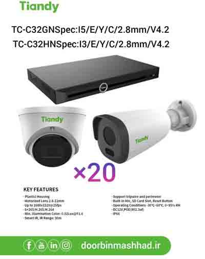 ## پک کامل دوربین مداربسته تیاندی مدل TC-R3120Spec:I/B/L/S/Eu با 20دوربین TC-C32GNSpec:I5/E/Y/C/2.8mm/V4.2 - نظارت کامل با کیفیتی بی نظیر