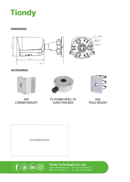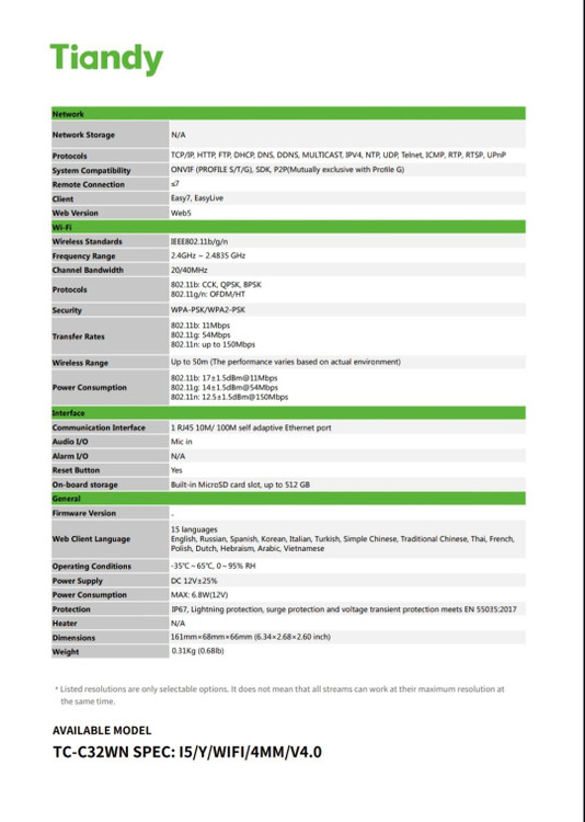 اگر به دنبال یک دوربین مداربسته با کیفیت بالا، قیمت مناسب و قابلیت های پیشرفته هستید، تیاندی مدل TC-C32WNSpec:I5/Y/WIFI/4mm/V4.0 انتخابی ایده آل برای شما می باشد.