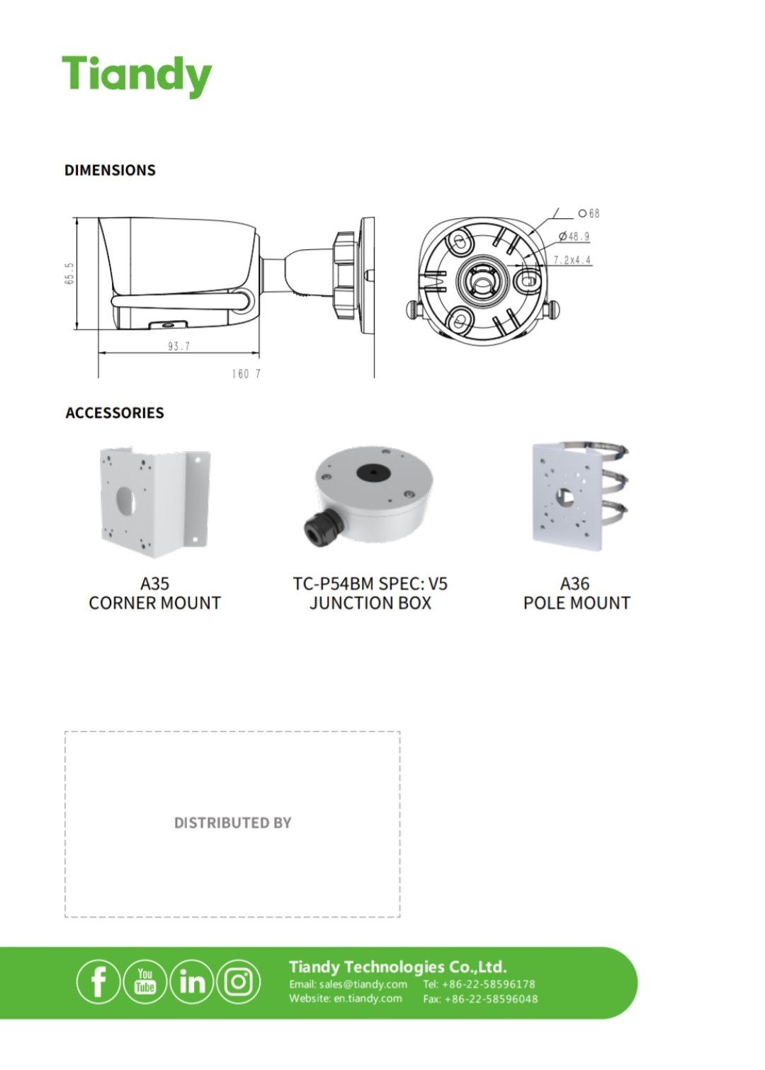 اگر به دنبال یک دوربین مداربسته با کیفیت بالا، قیمت مناسب و قابلیت های پیشرفته هستید، تیاندی مدل TC-C32WNSpec:I5/Y/WIFI/4mm/V4.0 انتخابی ایده آل برای شما می باشد.