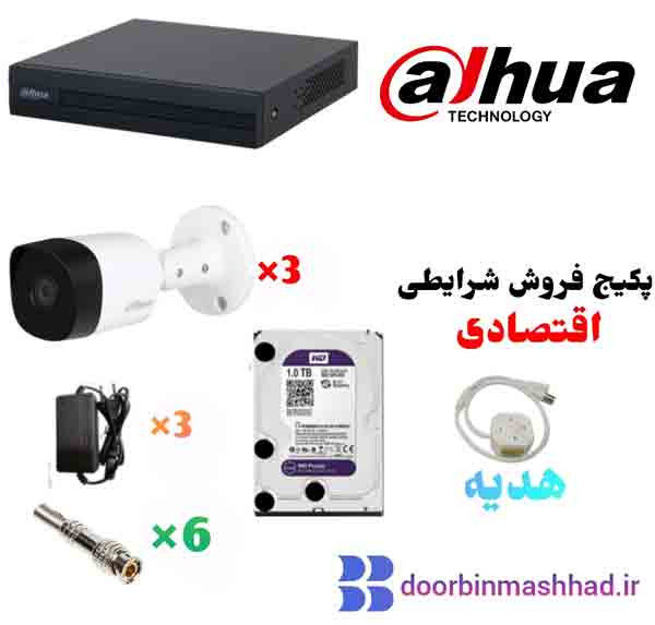 پک سه دوربین مداربسته داهوا (دوربین B1A21 و دستگاه 1B04)