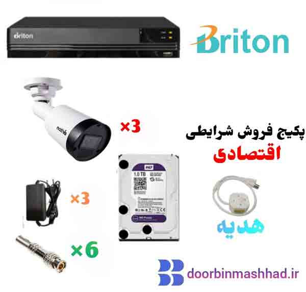 پک سه دوربین مداربسته برایتون (دوربین UVC211B19P-C و دستگاه UVRA04EMB Plus-D74G) دید در شب رنگی